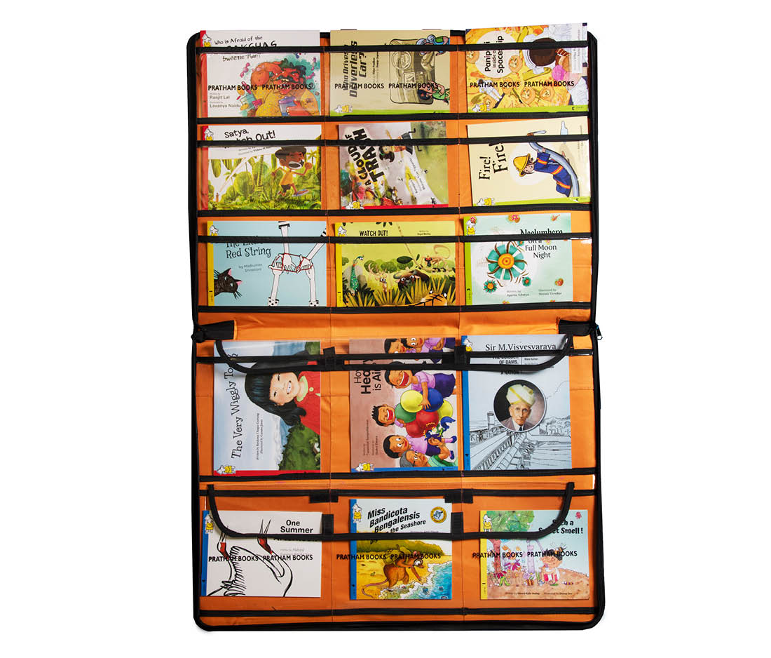 The Library-in-a-Classroom is a portable, wall-mounted, modular unit of up to 100 carefully selected storybooks. The books are divided across reading levels to better suit the specific classroom.